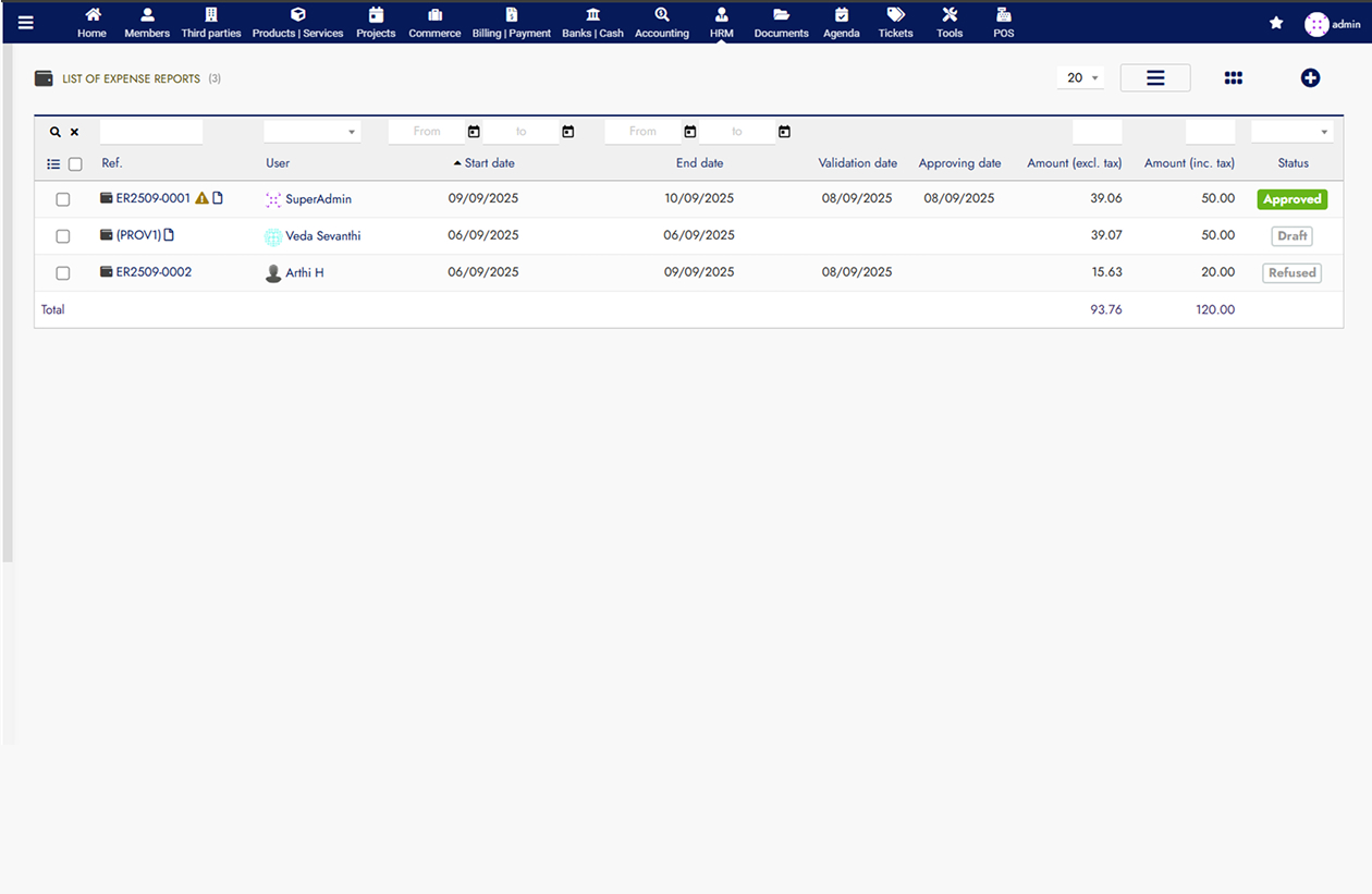 Managers can review, approve, or reject expenses with a streamlined validation process.